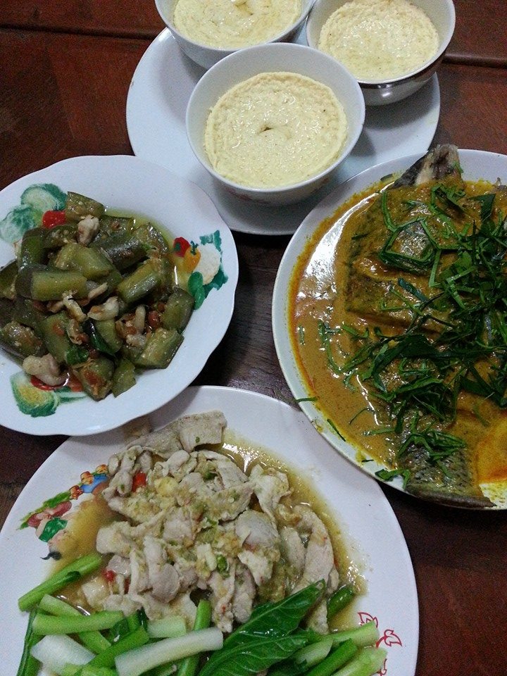 แกงส้มบ่าก้วยเต้ดใส่ปลา ยำจิ้นไก่ ไข่ตุ๋น