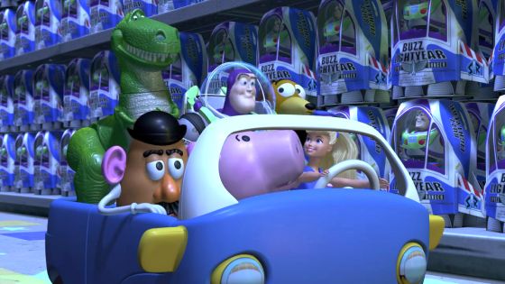 14. ตอนที่ขับไปรอบๆ ร้านของอัล แม่ไกด์สาวบาร์บี้บอกคณะทัวร์ว่า “ปี 1995 ร้านค้าที่ไม่มองการไกลสั่งสินค้าไม่พอจำหน่าย” นี่เป็นมุกตลกเพราะตอนที่ Toy Story (1995) วางจำหน่าย ตัวแทนขายของเล่นคิดว่าหนังไม่น่าจะเปรี้ยงและสั่งของเล่นมาน้อยกว่าความต้องการ