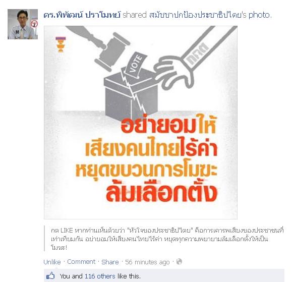 "อย่ายอม"ให้เสียงคนไทย"ไร้ค่า" หยุดขบวนการโมฆะ"ล้มเลือกตั้ง"