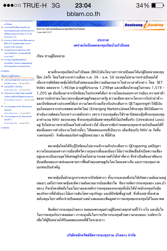 ข่าวร้ายกองทุนบัวแก้วปันผล รอบนี้งดปันผลครับ