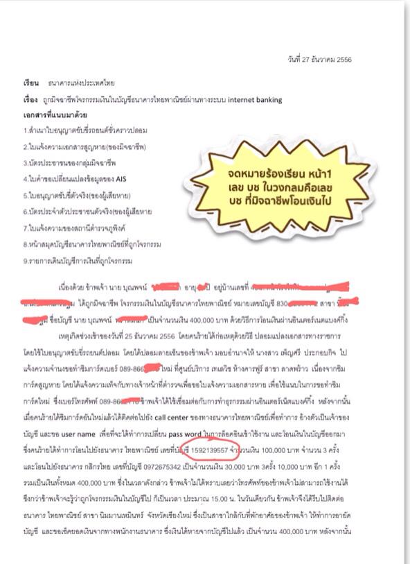 - จดหมายที่ทางธนาคารตอบกลับมา แต่กลับไปตรวจสอบความผิดปกติบัญชีของมิจฉาชีพ แทนที่จะตรวจสอบบของผู้เสียหาย แสดงให้เห็นเลยว่าทางธนาคารไม่ได้ให้ความสำคัญกับเรื่องนี้เลย
