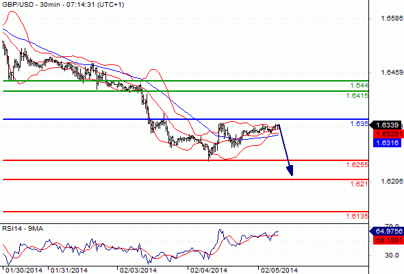 Alternative scenario: Above 1.635 look for further upside with 1.6415 & 1.644 as targets.