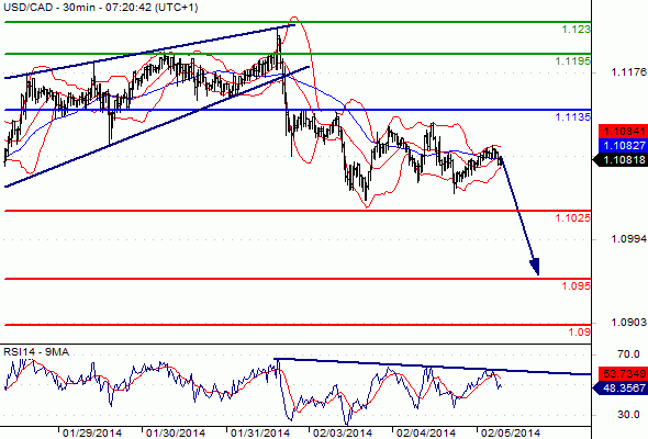 Our preference: Short positions below 1.1135 with targets @ 1.1025 & 1.095 in extension.