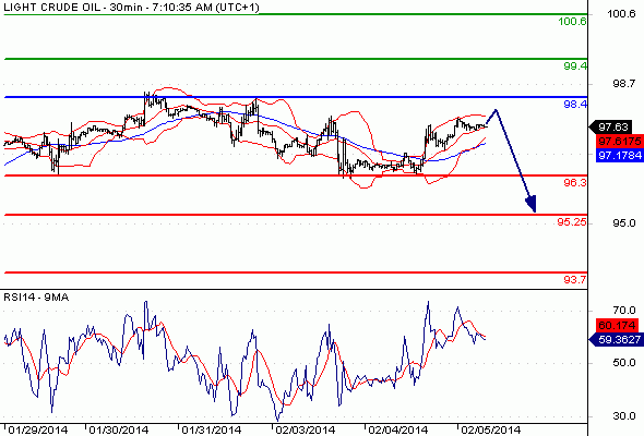 Crude Oil (NYMEX) (Mar 14) Intraday: key resistance at 98.4.