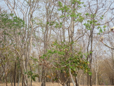 หลังจากผ่านช่วงอากาศหนาวเย็นมา ตอนนี้ยังอากาศเย็นอยู่บ้าง แต่บ่ายๆ แดดก็ร้อนแผดจัด นั่งรถไปสอนหนังสือ ตามริมทางในทุกที่ในเขตอำเภอที่ผมอยู่ตอนนี้ ต้นไม้ทิ้งใบกันเป็นแถบ คงเหลือแต่ต้น กับกิ่งก้าน ที่ดูแล้วมันใจห่อเหี่ยวไปหมด ที่บ้านผมเองพื้นที่เป็นร้อยไร่ก็ดูไม่สดใสเอาซะเลย แต่ที่เห็นพอโดดเด่นอยู่บ้างตอนนี้ก็คือ