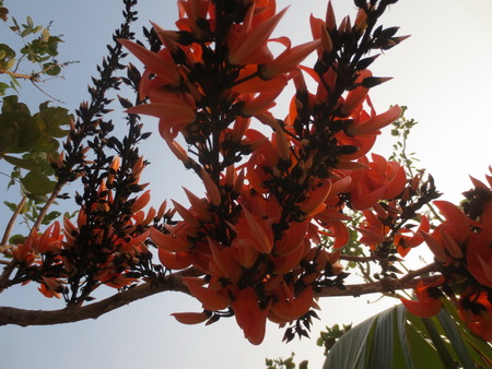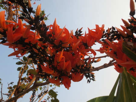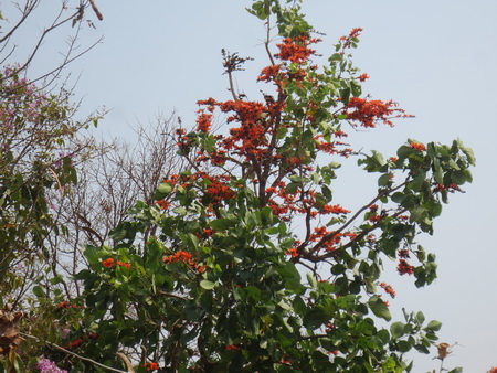 ทองกวาว ไม่ว่าที่ไหนก็เห็นพากันออกดอกสะพรั่งไปหมดเลย เธอกลายเป็นสาวงามในหน้าแล้งได้ดีทีเดียว ที่บ้านผมสิบกว่าต้นก็เริ่มเบ่งบานพอให้เพลินตาบ้างแล้ว ที่ถ่ายมานี้อยู่หน้าห้องเลย