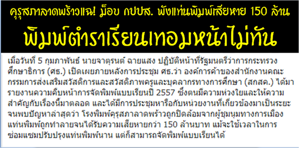 คุรุสภาลาดพร้าวแฉ! ม็อบ กปปส. พังแท่นพิมพ์เสียหาย 150 ล้านพิมพ์ตำราเรียนเทอมหน้าไม่ทัน