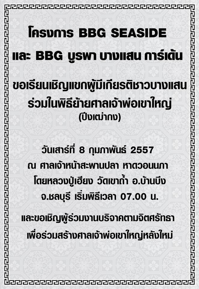 เรียนเชิญชาวบางแสนร่วมงานย้ายศาลเจ้าพ่อเขาใหญ่ (ปึงเฒ่ากง) วันเสาร์ที่ 8 กพ นี้ครับ เวลา 7.00 เช้า