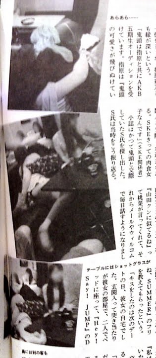 ผมก็เห็นข่าวนี้นะ เห็นรูปจูบกันด้วย ที่ว่าเมาทั้งคู่อะ ตอนนั้นยังคิดอยู่เลยว่าจะออกไปอีกรายมั้ย (แต่เอาจริงๆตั้งแต่ซัซชี่รอดโดนออกนี่ ยังไม่เคยเห็นใครโดนไล่ออกจากข่าวลักษณะนี้เลย อย่างจิยูนี่ก็เล่นระดับผู้บริหาร AKS เฉยเลย)