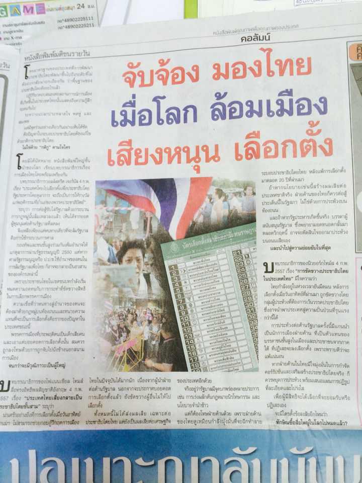 สื่อใหญ่ระดับโลก แฉ "พรรค ปชป.ม็อบ" ทำลายสิ้นประชาธิปไตยไทย (อ้างถึงมติชน 6 ก.พ. 57 คอลัมน์ หน้า 3)
