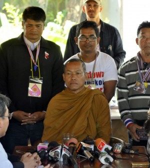 บางทีก็เป็นพระต่อพระ แต่คราวนี้คงไม่ใช่พระต่อพระแล้ว เพราะท่านหลุดวงจรมาจากท่านเกษม เณรคำ หรือสมเด็จวัดปากน้ำ หรือพระผู้ใหญ่ เจ้าคณะภาค เจ้าคณะจังหวัด รู้สึกว่าท่านเปิดศึกหลายด้าน แต่ตอนนี้น่าจะเหลือด้านเดียวแล้วก็คือ ด้านไม่เอารัฐบาล ไม่เอาระบอบทักษิณอะไรทำนองนี้ ยังไงก็ขอให้อย่าผลีผลาม อย่าหักด้ามพร้าด้วยเข่า ถึงแม้ว่าจะมีคนเชียร์ให้จับเยอะ แต่ก็มีคนคุ้มครองเขาเหมือนกัน ต้องระวังอย่าให้เป็นน้ำผึ้งหยดเดียว จนลุกลามขึ้นมา