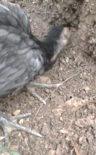 ในรูปนี้คือไก่ตัวเมียชื่อเจ้าจิบ ใช้จิกกินปลวกตัวที่เหลืออยู่บริเวณที่ขุดหัวปลวกออกมา