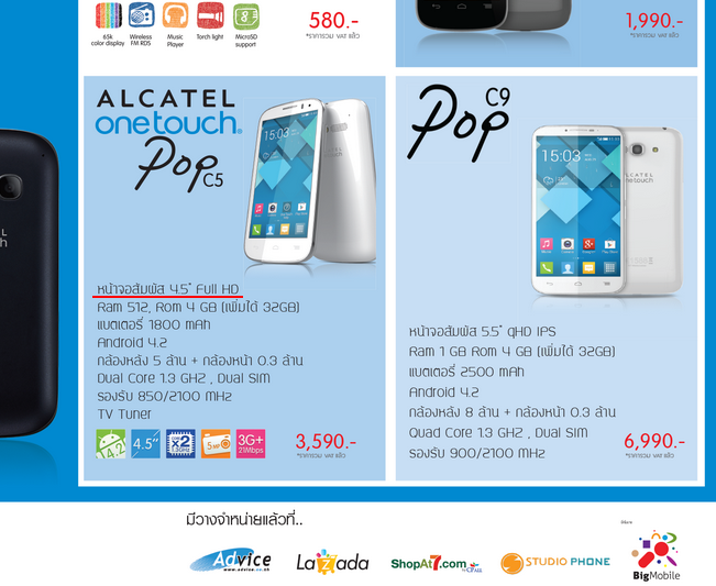 Alcatel จัดเต็ม !!! มือถือ หน้าจอ 4.5 นิ้ว Full HD ดู TV ได้ ราคา 3590 บาท !!!