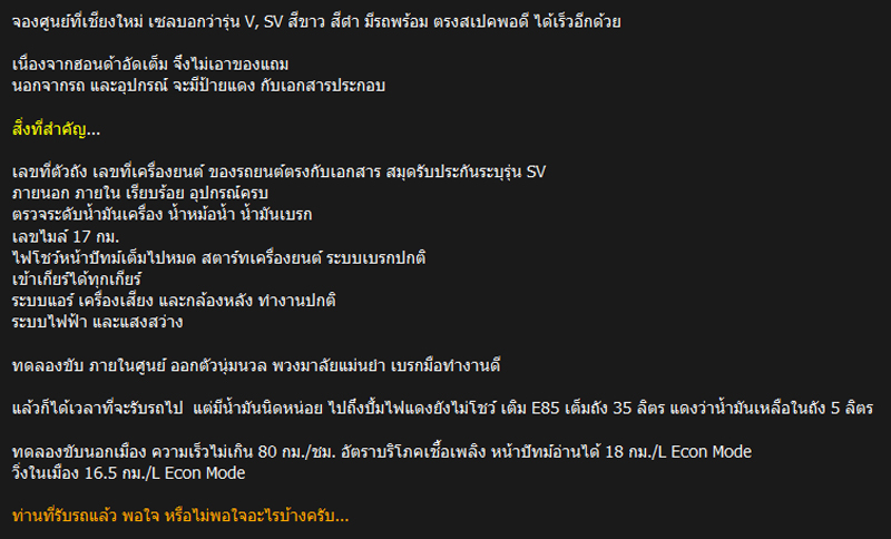 ทดลองขับนอกเมือง ความเร็วไม่เกิน 80 กม./ชม. อัตราบริโภคเชื้อเพลิง หน้าปัทม์อ่านได้ 18 กม./L Econ Mode