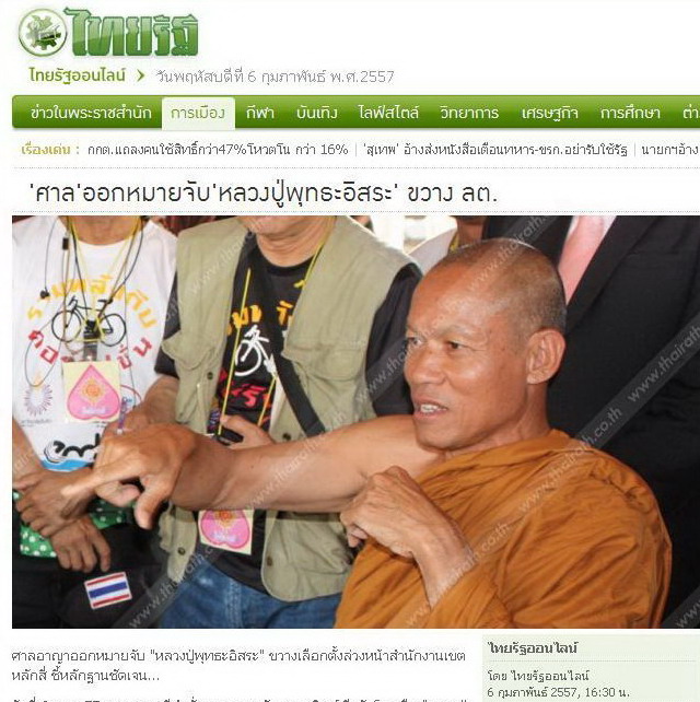 วันที่ 6 ก.พ. 57 ศาลอาญามีคำสั่งออกหมายจับ พระสุวิทย์ ธีรธัมโม หรือ "หลวงปู่พุทธะอิสระ" เจ้าอาวาสวัดอ้อน้อย จ.นครปฐม และเป็นแกนนำคณะกรรมการประชาชนเพื่อการเปลี่ยนแปลงประเทศไทยให้เป็นประชาธิปไตยที่สมบูรณ์อันมีพระมหากษัตริย์ทรงเป็นประมุข (กปปส.) เวทีแจ้งวัฒนะ ฐานขัดขวางการเลือกตั้งล่วงหน้าเขตหลักสี่ เมื่อวันที่ 26 ม.ค.ที่ผ่านมา