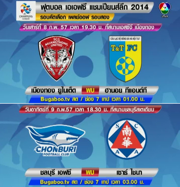 เมืองทองฯ-ชลบุรี มั่นใจเข้าเพลย์ออฟรอบ3 ACL 2014 มีถ่ายทอดด้วยพรุ่งนี้