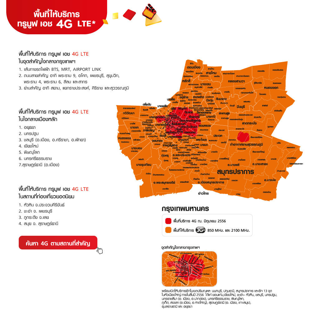 4G LTE Truemove-H พื้นที่บริการล่าสุด