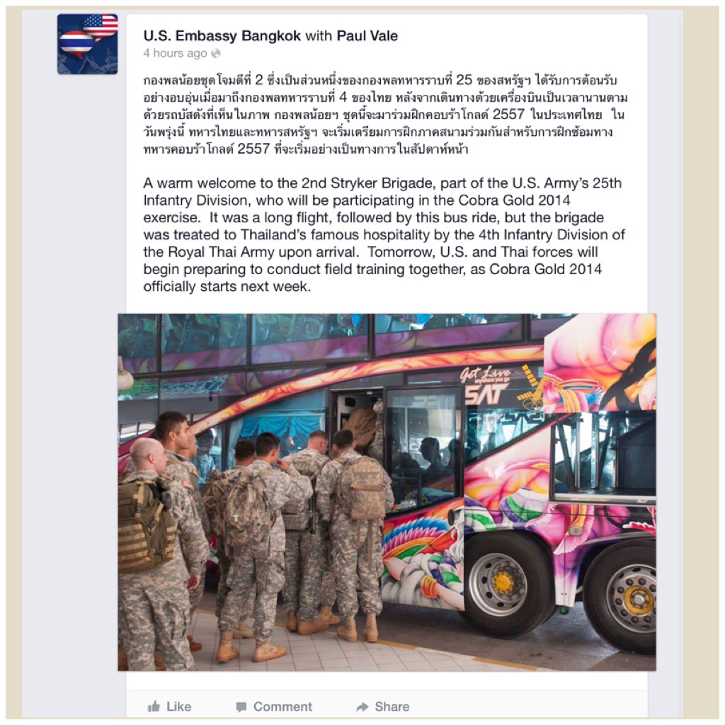https://www.facebook.com/usembassybkk/photos/a.119472568073894.14299.116453438375807/1101464083208066/?type=3&theater สถานเอกอัครราชทูตสหรัฐอเมริกาประจำประเทศไทย (U.S. Embassy Bangkok) เผยแพร่ปร