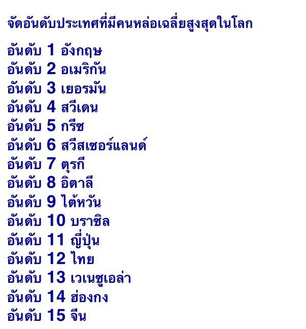 "ประชากรไทยหน้าตาดีอันดับ 12 ของโลก อันดับ3 ของเอเซีย