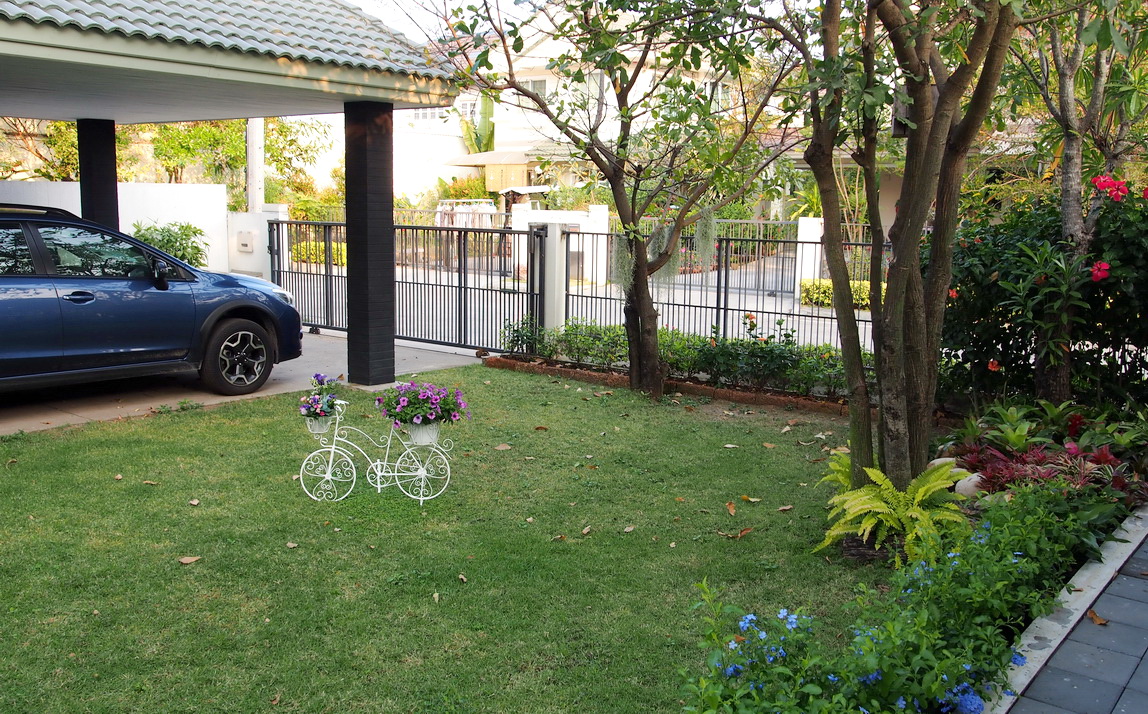 เข้าบ้านไปดู..โดนหลอกครับ เป็นจักรยานแต่งสวนตังหาก มีตะกร้าใส่ดอกไม้หน้าหลัง คุณนายเอาไปจอดไว้กลางสนามหญ้าเลย