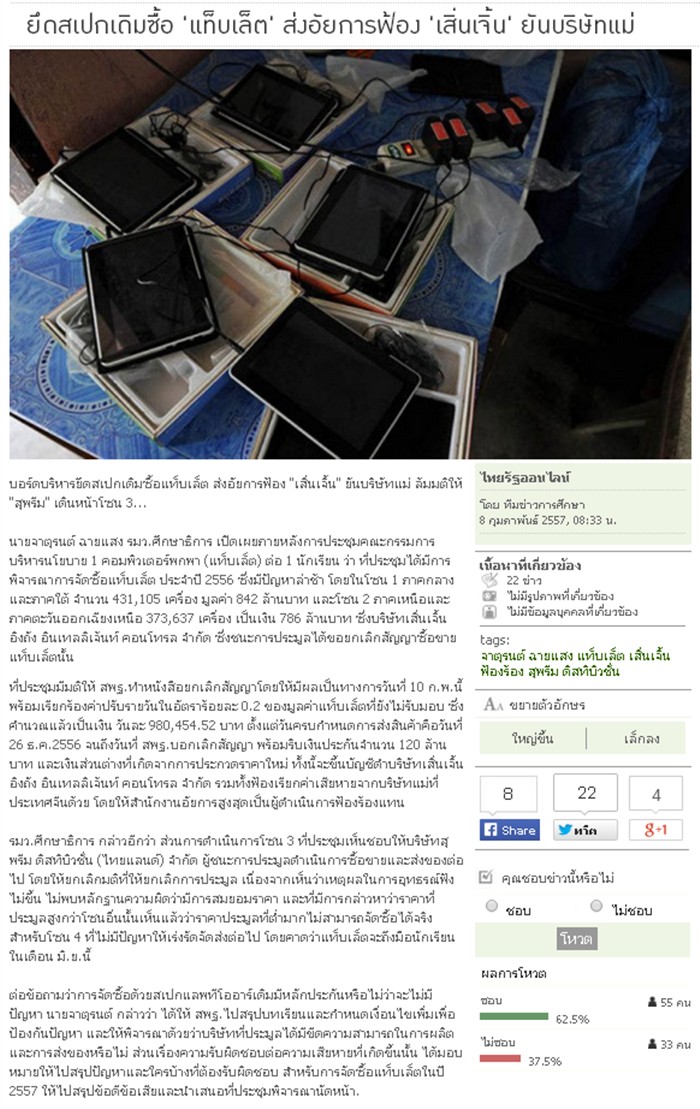 ยึดสเปกเดิมซื้อ "แท็ปเล็ต" ฯ