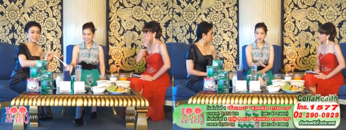 กำลังฟังรายการขายของแนวนี้ของบลูสกาย โฆษณา คอลลาเจน ยี่ห้อ Collahell โดยดาราชื่อดังของไทยสามคน