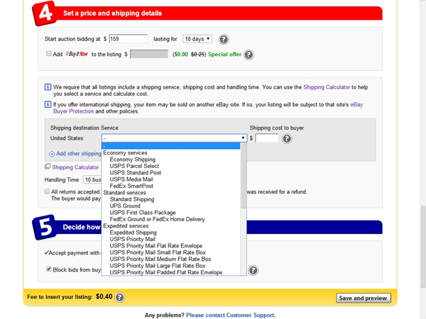 ปัญหาการสร้างรายการสินค้าใน ebay