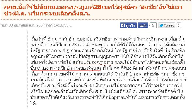 ผมว่า กกต. โดยเฉพาะนายสมชัย ศรีสุทธิยากร นี่ มีเจตนาจงใจทำผิดกฎหมายอาญามาตรา 157 ชัดเจนครับ