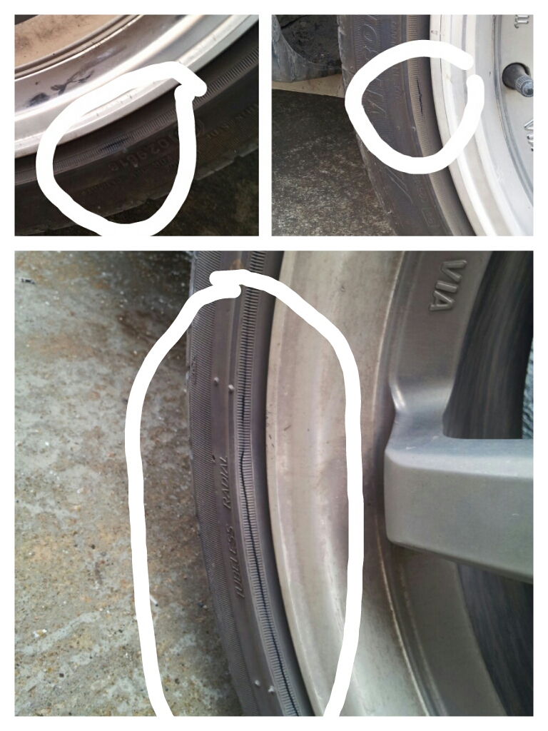 ไม่รู้โดนอะไรมา มาเห็นอีกทีเป็นแบบนี้แล้ว กระทะล้อก็เป็นรอยขูด กระทะไม่ได้ซีเรียส แต่ยางนี่สิ ถือว่าอันตรายมากมั้ยคะ