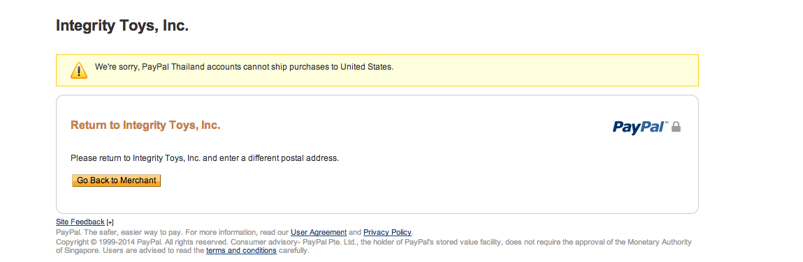 Paypal >> we're sorry things don't appear to be working at the moment please again later