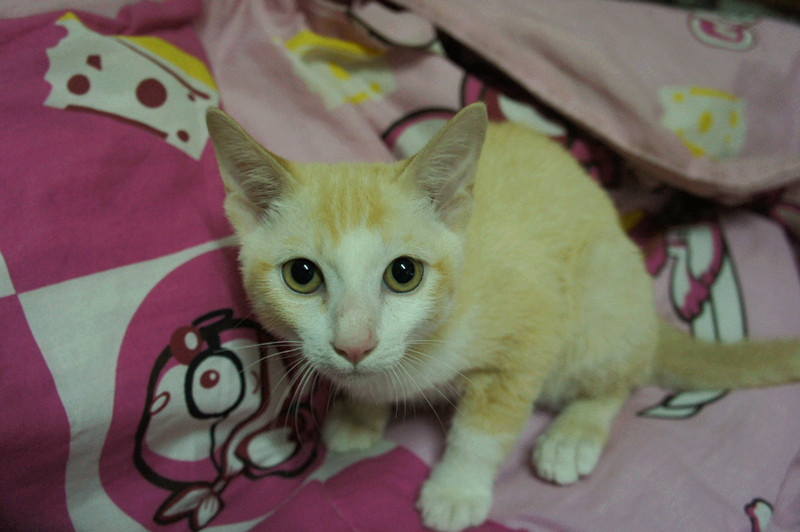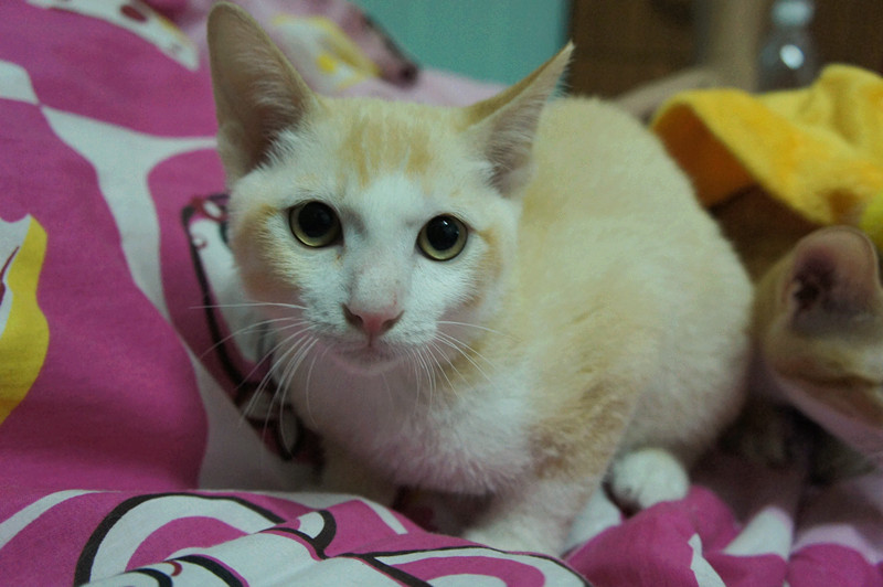 คุณป้าจึงรับลูกแมวไว้ดูแล แรกเริ่มคุณป้าก็ตั้งใจเลี้ยงไว้เอง โดยเอาไว้ในกรงใหญ่ ส่วนแมวเดิม ก็ปล่อยในบ้าน (ปกติแมวเดิมจะนอนในกรง) แมวสามตัวก็มีขู่ๆกันบ้างค่ะ แต่ตอนนี้คุณป้าไม่สามารถจะดูแลต่อได้ค่ะ เพราะมีหลานเล็กๆอยู่ด้วย (เหนื่อยค่ะ คุณป้าดูแลแมวสามตัว หมาหนึ่งตัว แถมทำงานบ้านด้วย) ก็เลยให้เราช่วยหาคนที่รักแมวจริงๆ คนที่อยากดูแลเค้า แล้วก็ไม่ทอดทิ้ง ตอนแรกคุณป้าอยากให้แบบแพ็คคู่ แต่ก็ไม่มีใครรับเลย คุณป้าเลยตัดสินใจว่า ยังไงก็ได้ค่ะ ขอแค่ให้น้องแมวได้อยู่กับคนที่ดีๆ จะแยกกันก็ได้