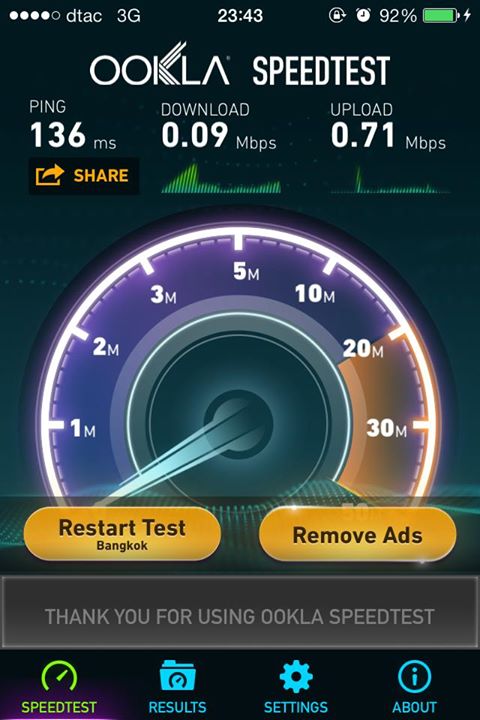 DTAC .. มาดูความเร็วที่ผมวัดได้หน่อยสิ นี่หรอ?ไตรเนท ช้ากว่าเนทบ้านอีก