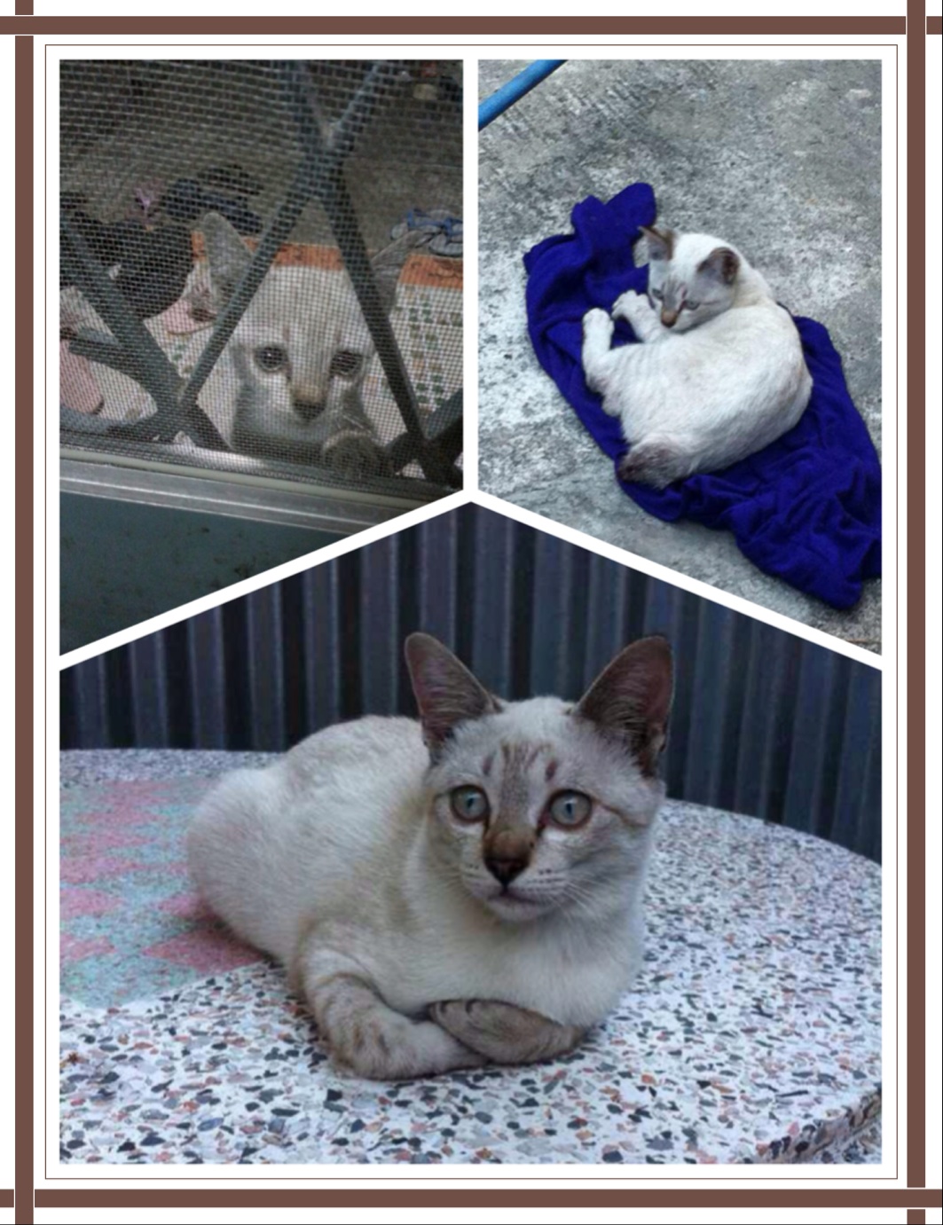 ฝากหาบ้านให้ลูกแมวตัวนี้ด้วยนะคะ เพศหญิง อายุประมาณ 5-6 เดือน สีขสว หางกุด ตาออกสีน้ำข้าว ... น้องตกลงมาจากหลังคา เพื่อนของพี่จะเลี้ยงไว้เอง แต่แม่พี่เค้าไม่ยอมให้เลี้ยง จะเอาไปปล่อย เพื่อนพี่เค้าสงสาร เลยให้ช่วยประกาศหาบ้านให้น้อง ใครสนใจติดต่อได้เลยค่ะ ( ขอคนที่รักและทางบ้านอนุญาตให้เลี้ยงน้องนะคะ ) ตอนนี้น้องอยู่แถว สน.บางกอกใหญ่ค่ะ