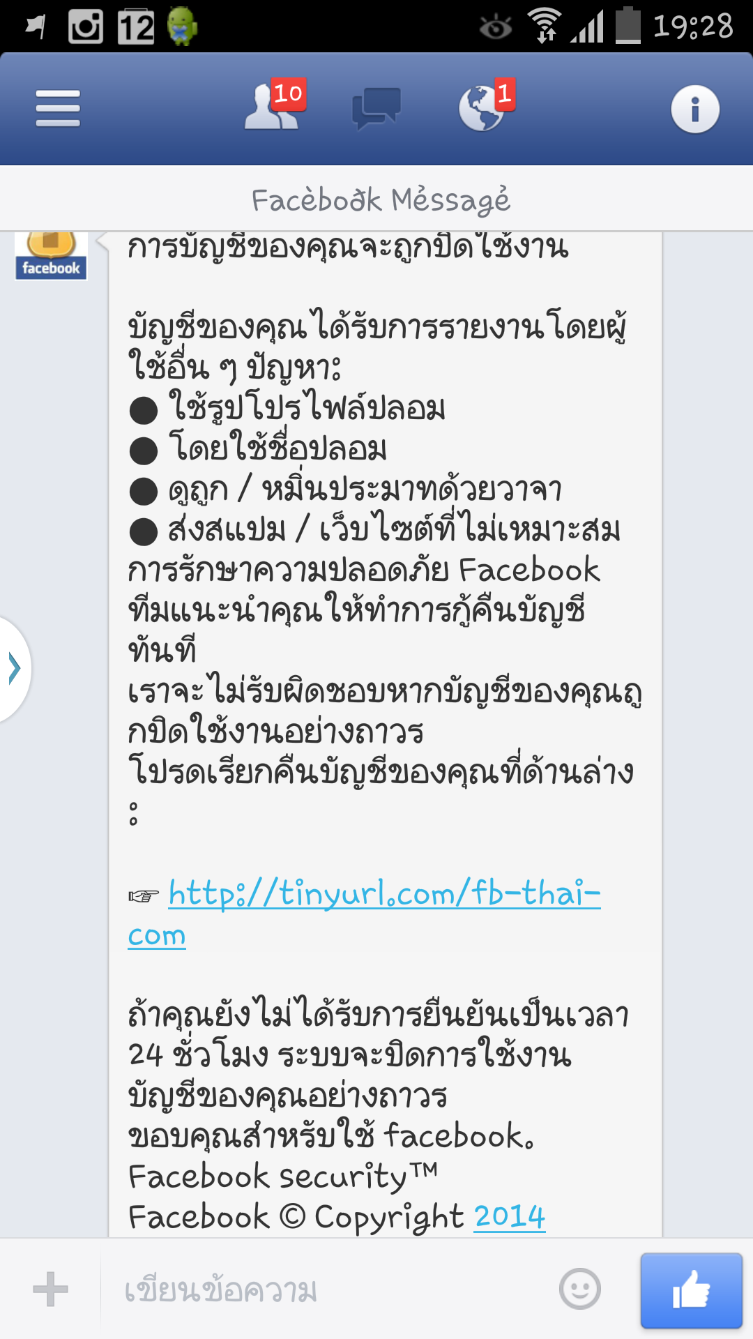 เฟสบุค ส่งข้อความมาบอกว่าเฟสบุคจะถูกปิด