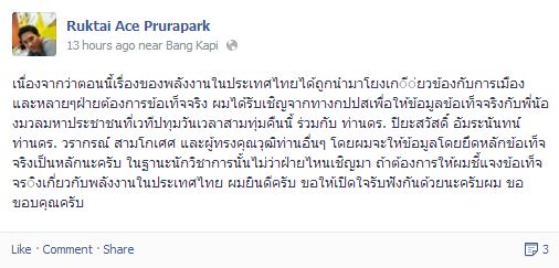 ผมก็เฉยๆ อาจจะยืนคนละฝ่าย หรือฝ่ายเดียวกัน แต่วันนี้เห็นโพสท์ FB ที่ผมอ่านแล้วเห็นถึงความหล่อและจุดยืนอันมั่นคงของเค้า เลยเอามาตั้งกระทู้สักหน่อย