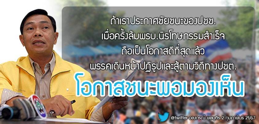 เสี่ยจ้อน อลงกรณ์ พลบุตร เตรียมเปิดแถลงข่าว ประกาศลาออกจากพรรคประชาธิปัตย์แล้ว เมื่อเวลาประมาณ 12.30 น. วันที่ 26 พ.ย. 2557 มีรายงานว่า ในวันนี้ เวลา 14.00 น. นายอลงกรณ์ พลบุตร รองหัวหน้าพรรคประชาธิ
