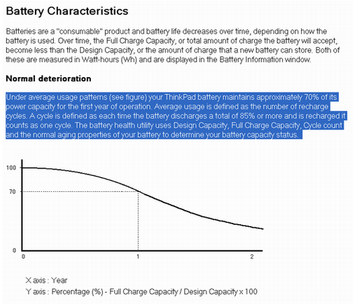เท่าที่รู้ คือ แบตเตอรี่ LITHIUM-ION มี Cycle = 400-500 รอบ โดยเฉลี่ย ก็ประมาณปีกว่าๆ แบตถึงจะเสื่อม