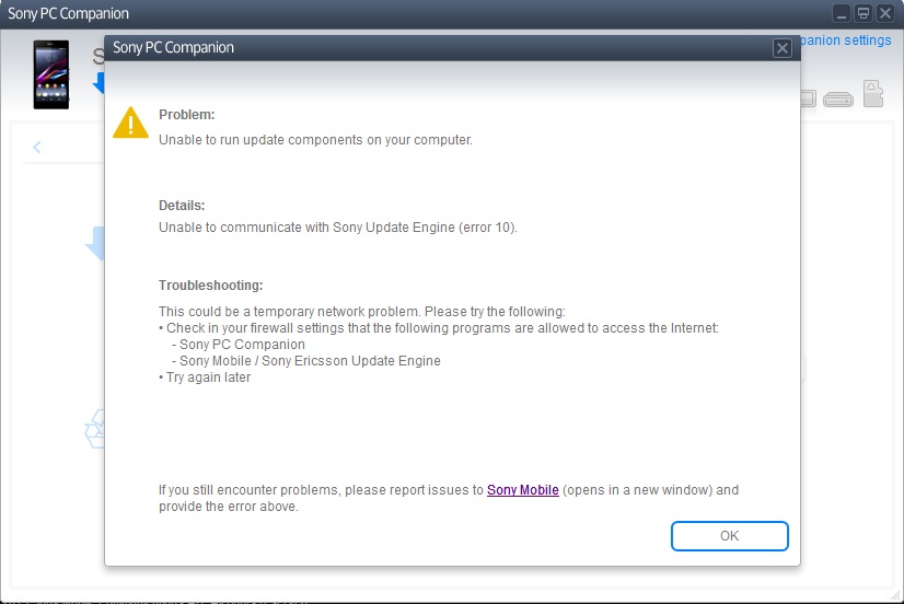 อัพเดท มือถือ Sony ผ่าน PC companion ไม่ได้