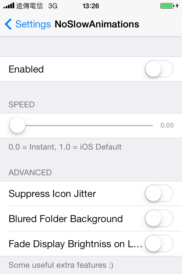 สอบถามครับท่านที่ใช้ tweak NoSlowmotion อยู่บ้างช่วยแนะนำวิธีการตั้งค่าด้วยครับว่าควรตั้งระดับไหน (4S 7.0.4)