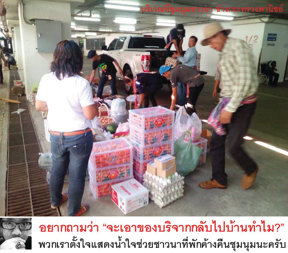 ผลไม้ ขนม อาหารแห้ง น้ำดื่ม ก็หลั่งไหลมาแบบมหาศาล จนสามารถรองรับพี่น้องชาวนาได้นับพันๆคนแบบสบายๆ และมีทีท่าว่าจะเป็นผู้สนับสนุนที่สามารถดูแลได้อย่างต่อเนื่อง ด้วยความรักและเข้าใจหัวอกชาวนา