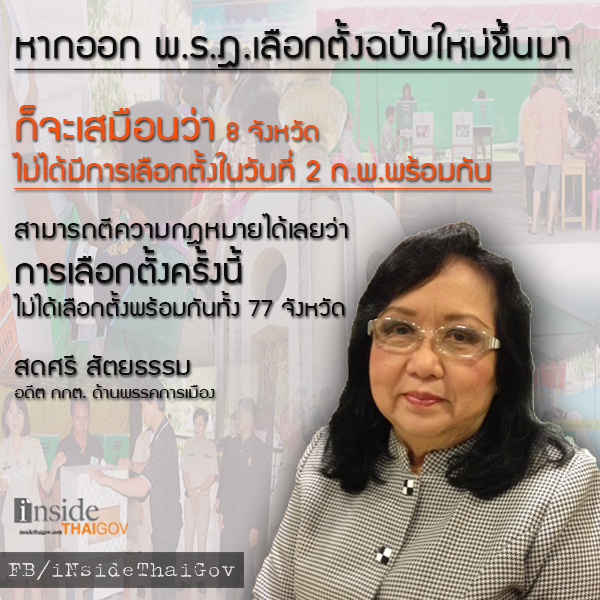 หมายเหตุ - หลังศาลรัฐธรรมนูญรับคำร้องของผู้ตรวจการแผ่นดิน กรณีมีผู้ร้องว่าการเลือกตั้งวันที่ 2 กุมภาพันธ์ เป็นโมฆะ เพราะขัดรัฐธรรมนูญ มาตรา 108 ที่ระบุว่าวันเลือกตั้งนั้นต้องกำหนดเป็นวันเดียวกันทั่วรา