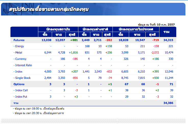 สรุปยอดTFEX 22/1/57 สถาบันLong หรั่ง+เม่าShort
