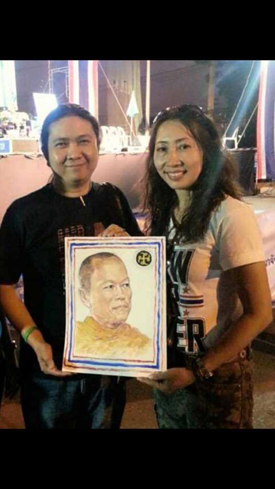 อาจารย์ธง อุดมผล มอบผลงาน รูปเหมือนของหลวงปู่พุทธอิสระ สำหรับประมูลหารายได้ ให้เวทีแจ้งวัฒนะ