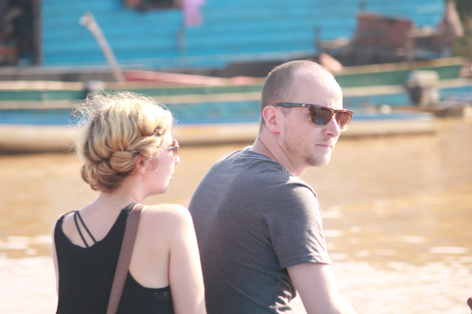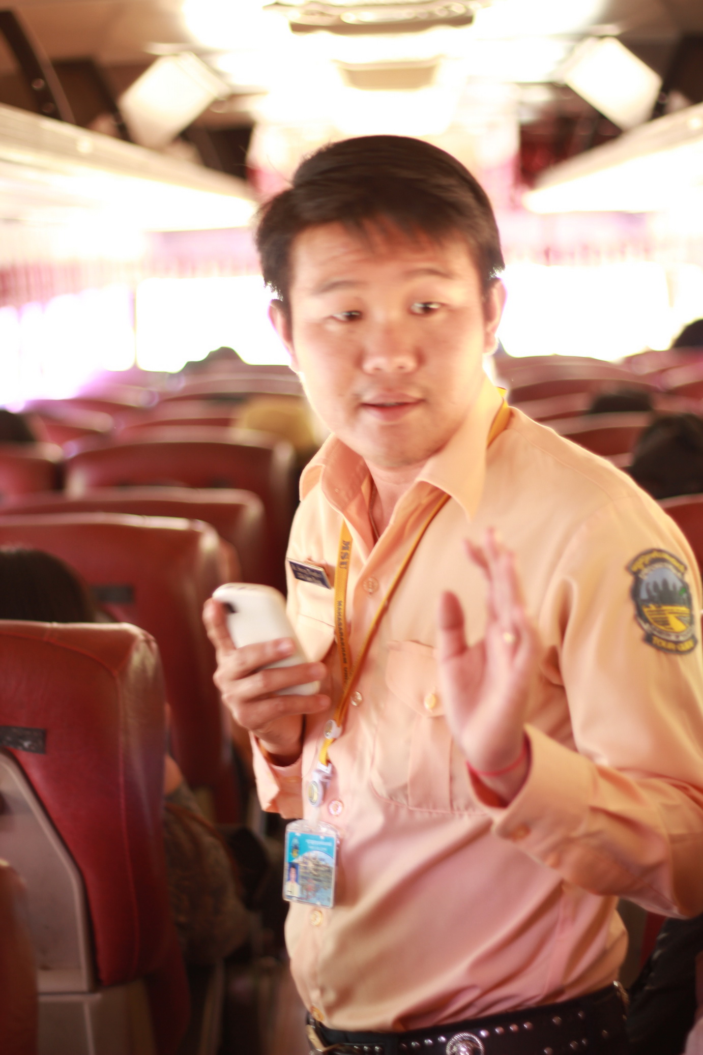 ผมออกจากไทยทางด่านช่องจอม จังหวัดสุรินทร์ไปถึงเสียบเรียบประมาณตอนบ่ายๆ กว่าจะไปถึงระหว่างทางที่ไปเสียมเรียบรถทัวร์ของเราโดนตำรวจตั้งด่านตรวจแล้วก็ดักเราไว้ตั้งนานครับเพราะว่ามีรถทัวร์ชนคนเขมรตาย 2 คน ไกด์เขาเล่าให้ฟังรออยุ่นานครับกว่าจะได้ออกมาจากด่านตรวจ พอมาถึงเมืองเสียมเรียบแล้วพี่ไกด์ของผมแกก็พาไปกินอาหารเลยครับที่ร้าน "โตนเลสาบ" หรือแปลเป็นไทยก็ชื่อร้านว่า "ทะเลสาบ" นี้ล่ะครับ หลังจากกินเสร็จเราก็รีบมุ่งหน้าไปที่ "โตนเลสาบ" หรือ ทะเลสาบของกัมพูชาเลยครับ ไปดูทะเลสาบน้ำจืดที่เขาว่ากันว่าใหญ่ที่สุดในเอเซัยตะวันออกเฉียงใต้และหมู่บ้านของชาวประมงกัมพูชาและเวียดนามที่อาศัยอยู่บนแพในทะเลสาบครับ ดูหน้าพี่ไกด์ของผมสิครับ