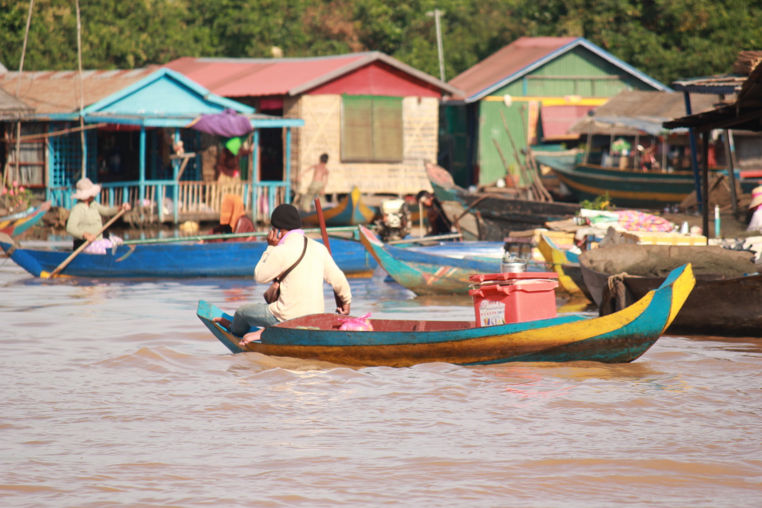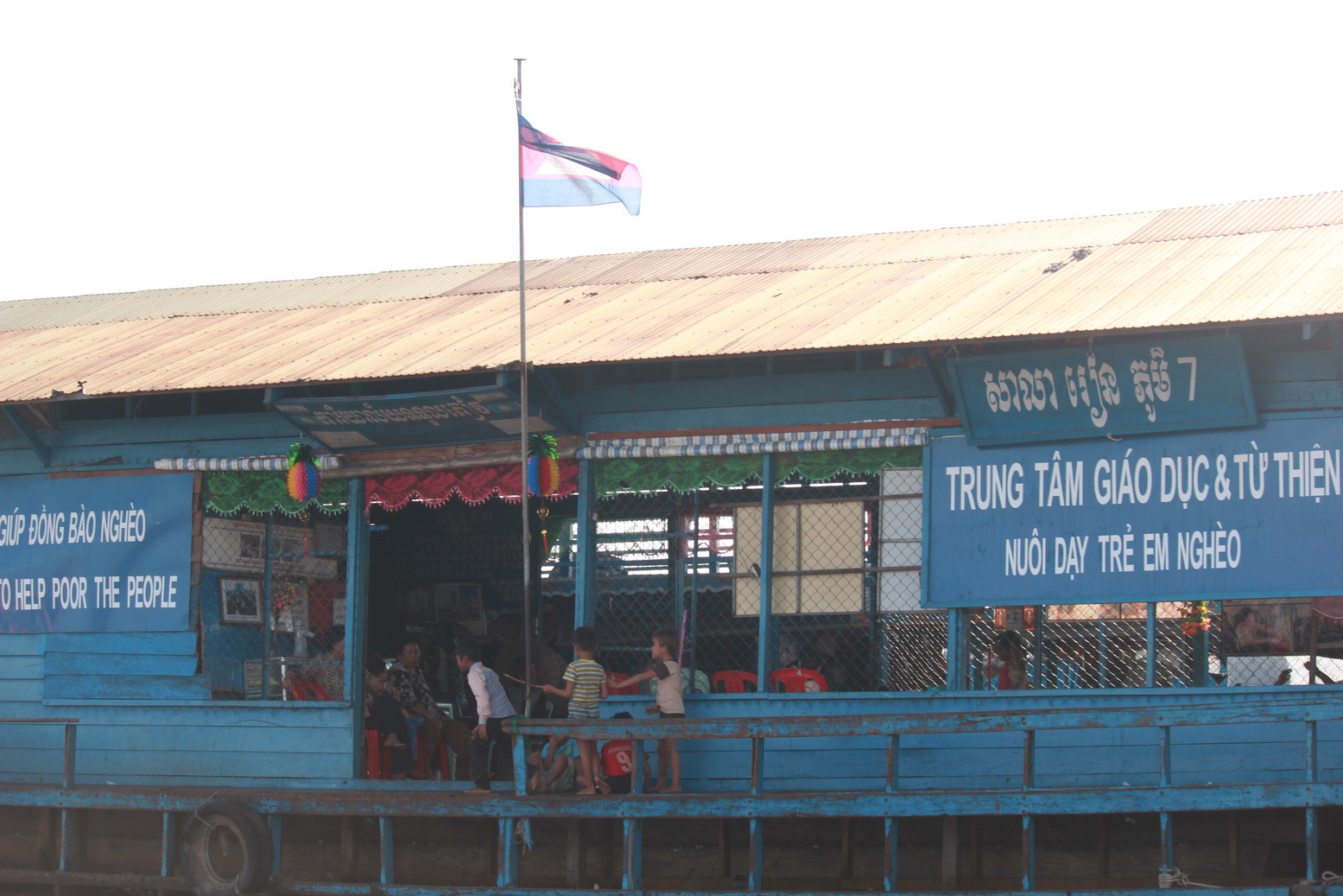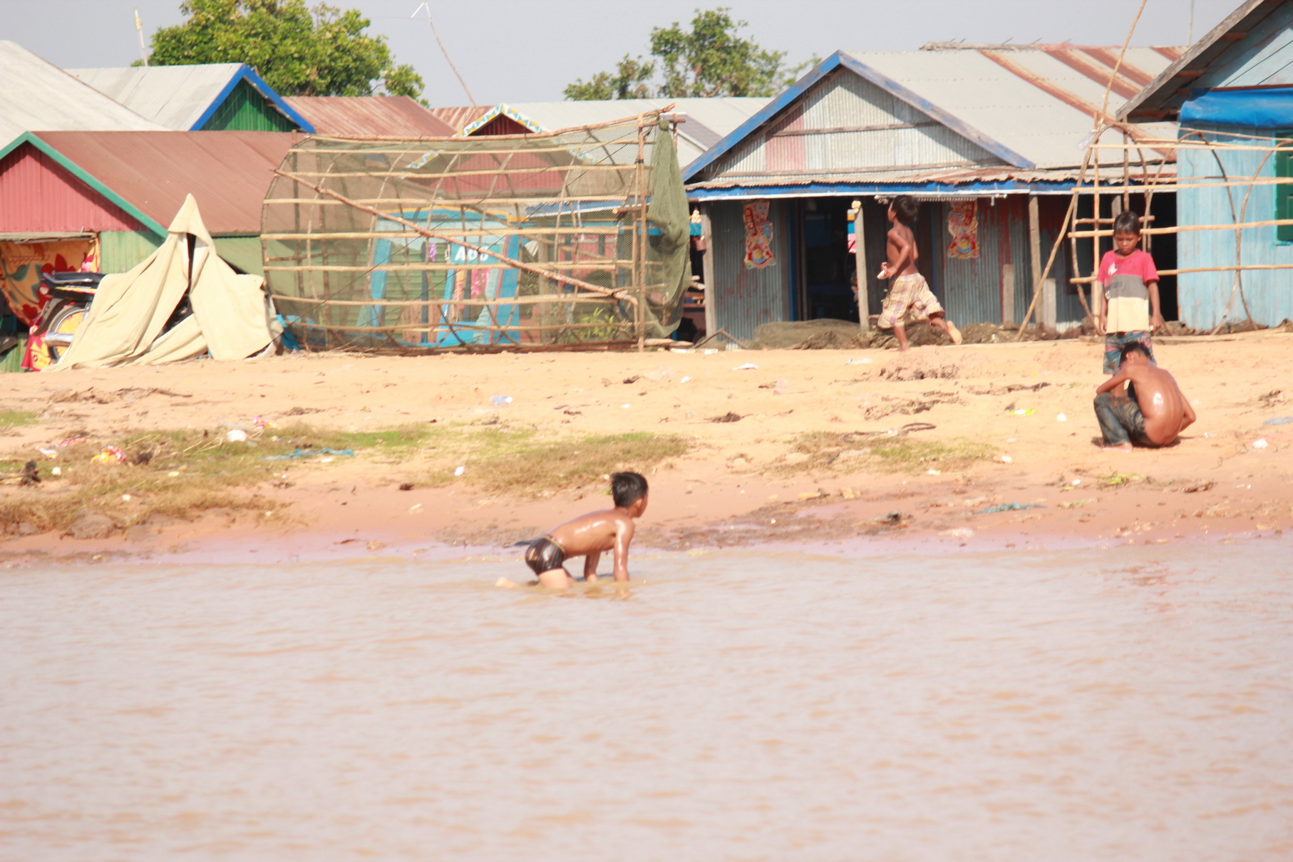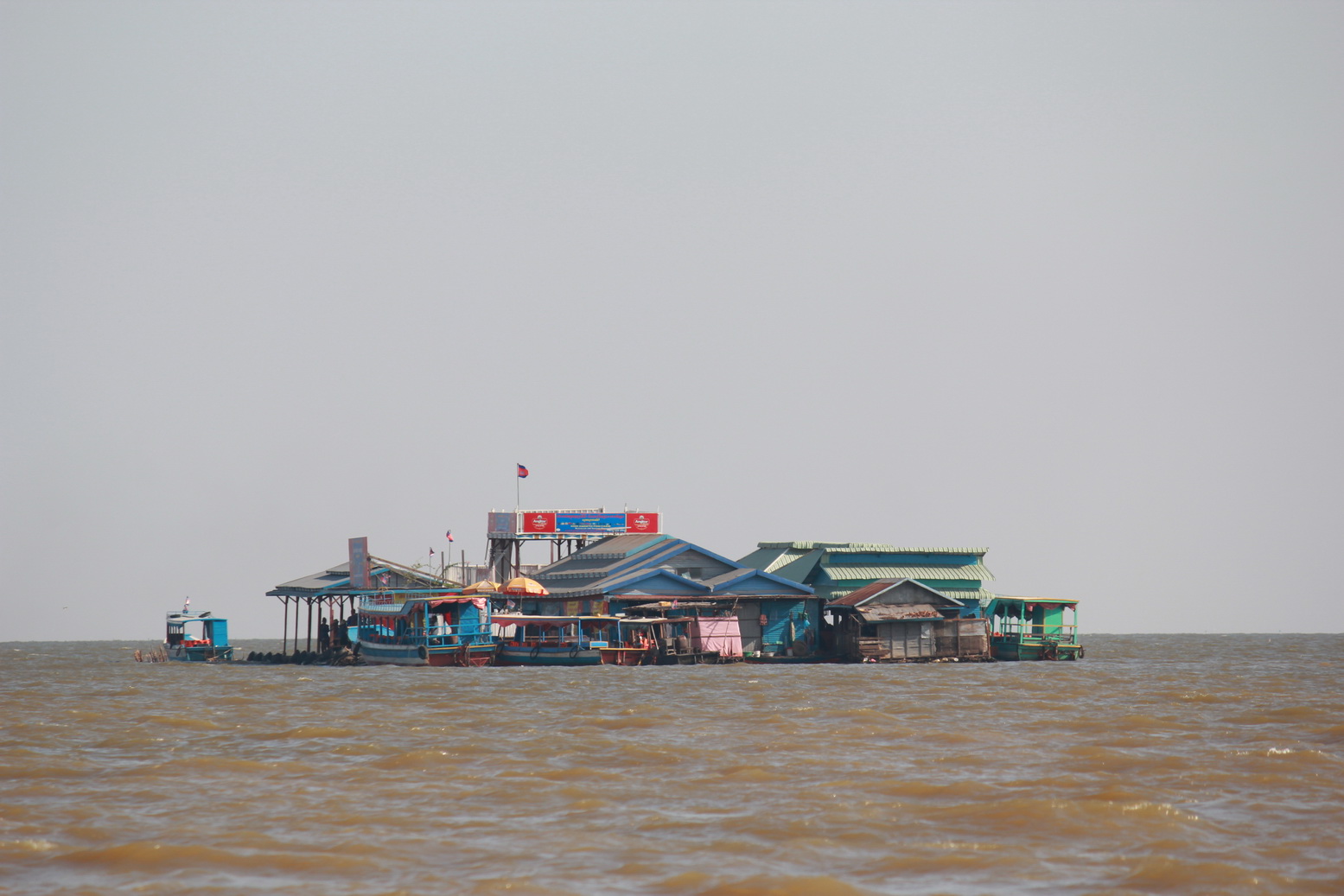 ถึงทะเลสาบแล้วครับ วิถีชีวิตของชาวบ้านก็ยังคงดำเนินไปปกติครับแม้จะมีนักท่องเที่ยวมาก และในหมู่บ้านแพลอยน้ำนี้ก็จะมีร้านค้า โบสถ์ วัด โรงเรียน เป็นเหมือนบ้านที่อยู่บนดินเลยครับ แต่แค่เขาอาศัยอยู่กันในน้ำเท่านั้นเองแล้วบ้านเองก็จะมีทั้งแบบเป็นแพและแบบเสาสูงเลยครับ ไปช่วงนี้น้ำลดพอดีทะเลสาบเลยดูไม่กว้างขวางเท่าไรแต่ถ้าดูตามเขตเสาไฟที่แสดงป้ายบอกว่าน้ำท่วมนิสูงมากๆเลยครับ