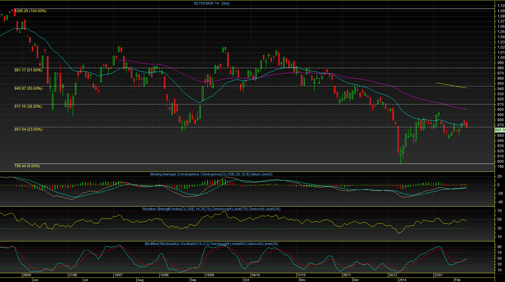 S50H14 TF Day : เมื่อวานนี้ ยังคงไหลร่วงลงมาต่อ และก็ หลุดทั้ง EMA25 วัน & Fibo 23.6% และปิดแท่งแดง เต็มๆแท่ง