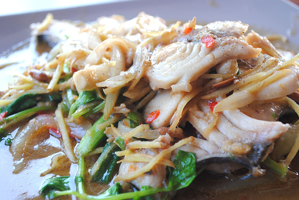 เมนูต่อมาได้แก่อินทรีย์อวนดำผัดคึ่นฉ่าย