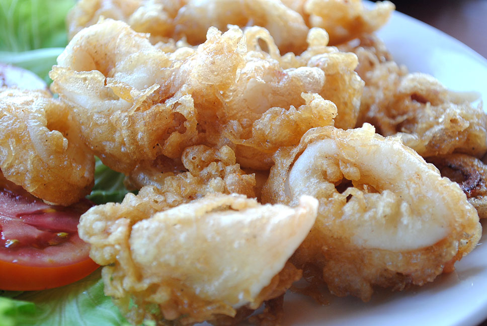 ปลาหมึกชุบแป้งทอด ธรรมดาครับ กินกับน้ำจิ้มบ๊วย