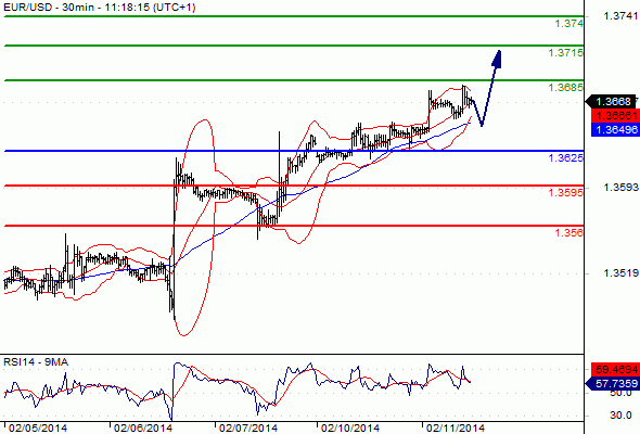 Most Likely Scenario: Long positions above 1.3625 with targets @ 1.3685 & 1.3715 in extension.