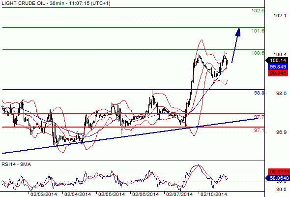 Crude Oil (NYMEX) (Mar 14) Intraday: the upside prevails.